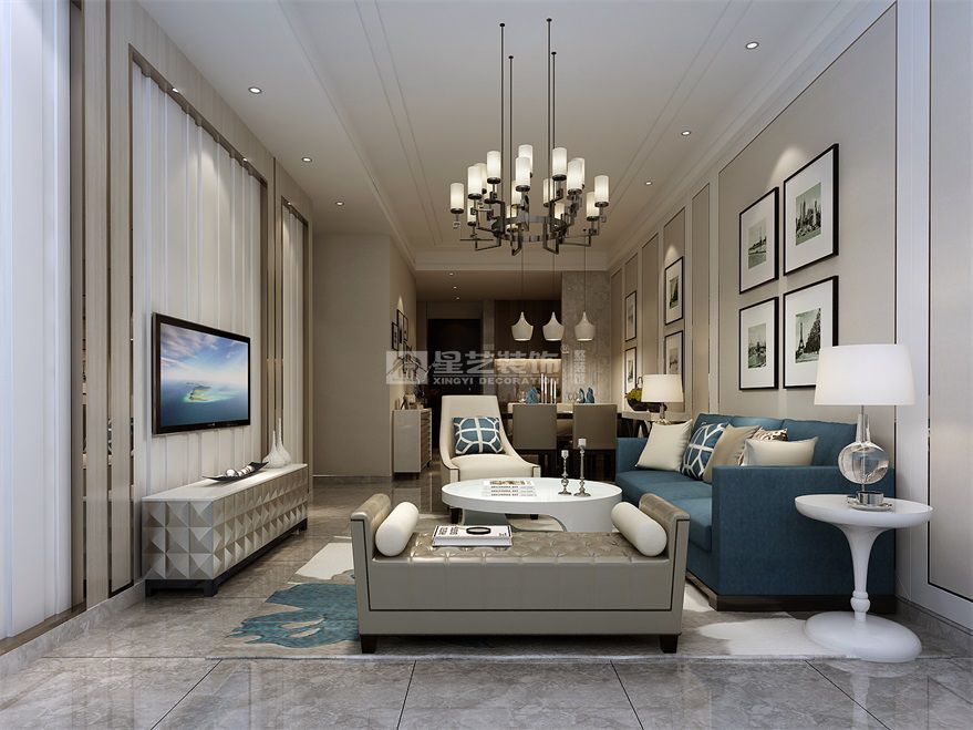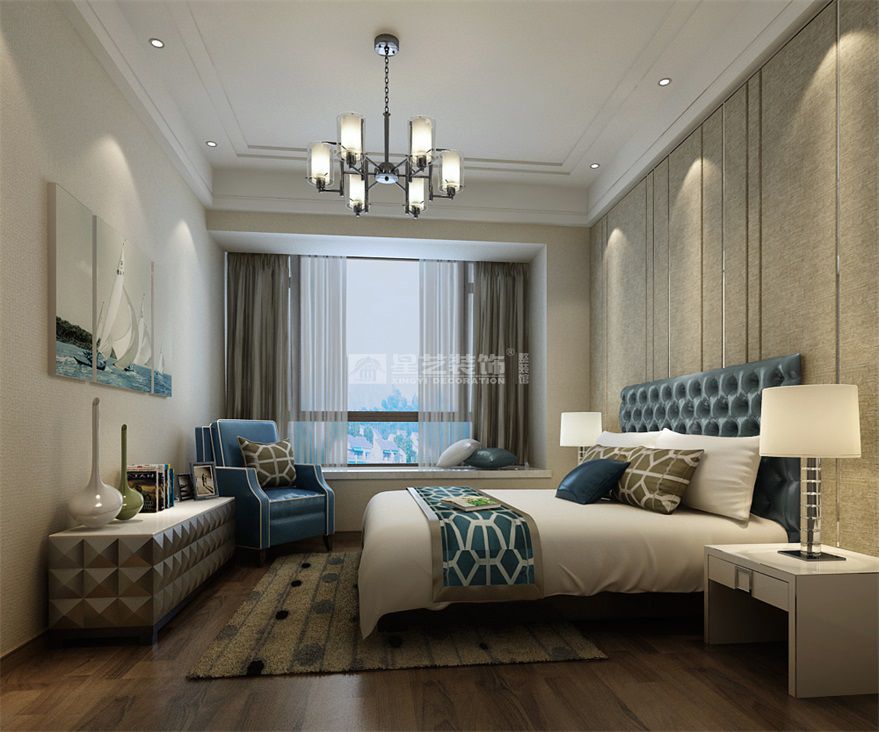 配色上,米色布藝與木飾,賦予空間優雅含蓄的氣質。粗細有致,克制應用的金屬線條,通過豎橫有序的伸展,“構成”出藝術品味。軟裝里,一抹精致的 “靜謐藍”在米白的背景下,顯得優雅而迷人